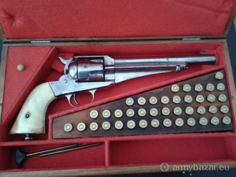 Popis: Predám historický Remington 1875 v ráži 44 Remington.Mimo krabičku je ešte 50 nábojov. Stav revolveru veľmi dobrý.