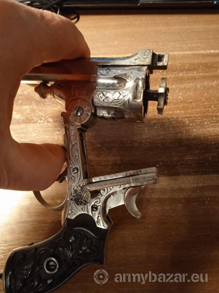 Popis: Predám historický revolver WARNANT 320CF,SA/DA.Vyrobený do roku 1890,bez zp a ohlasovacej povinnosti.Zlamovací,centrálny vyhadzovač nábojníc.Dlžka 188mm,dlžka hlavne 89mm.Súčasťou predaja je aj znalecký posudok,že sa jedná o zbran vyrobenú do roku 1890.Ak by bol záujem môžem predať aj novú nepoužitú sadu ktorá obsahuje náradie na ručné prebitie nábojov,nábojnice,strely,zápalky,odmerku na prach.